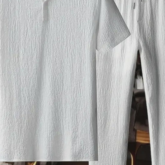 Product Name: Men's Crinkled Co-Ord Set White